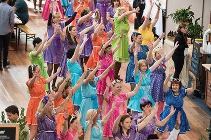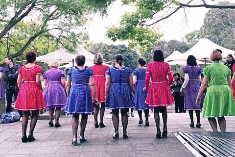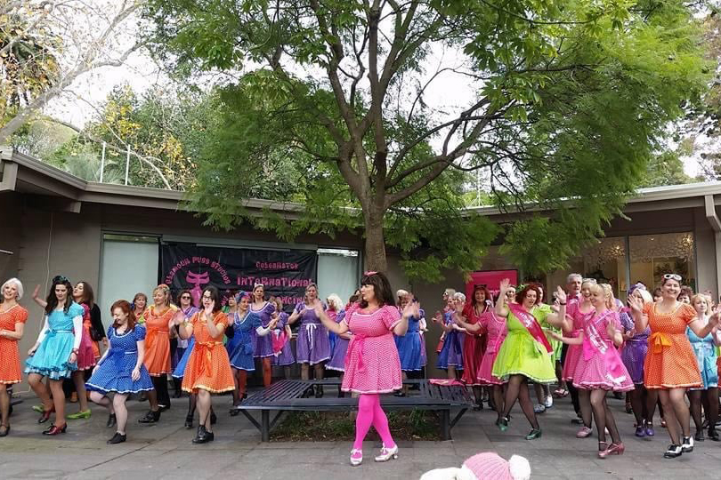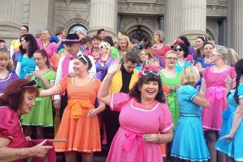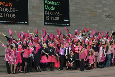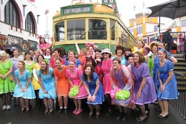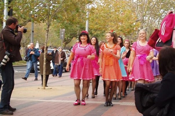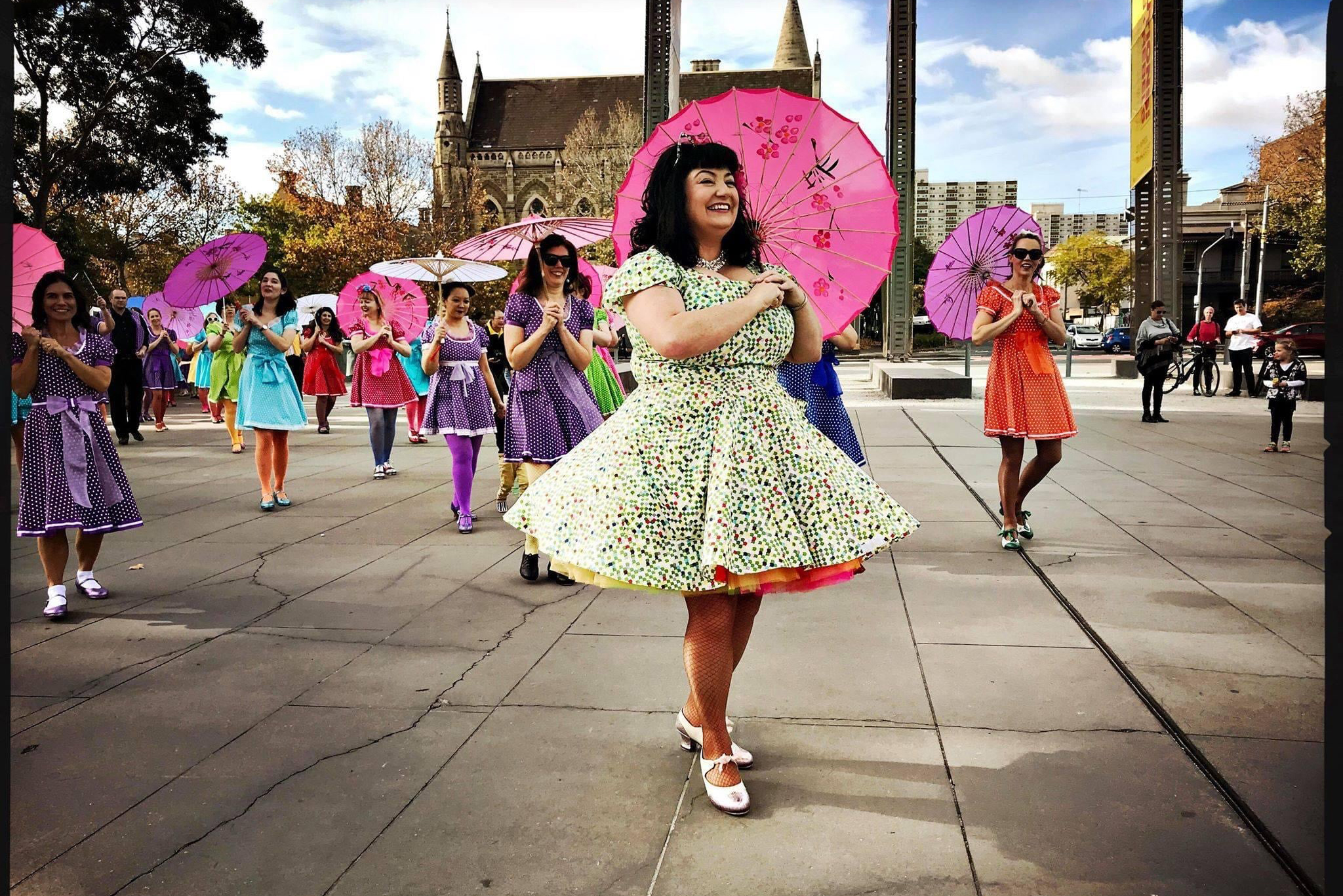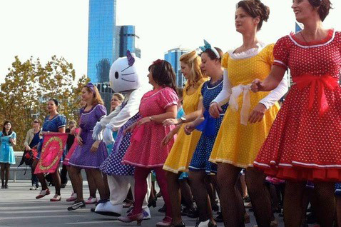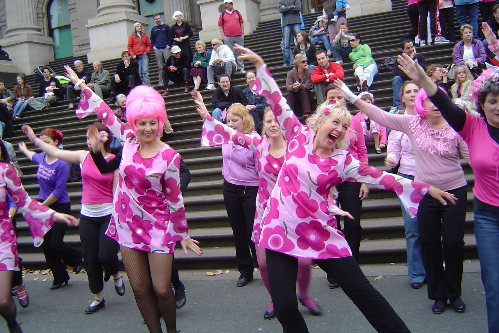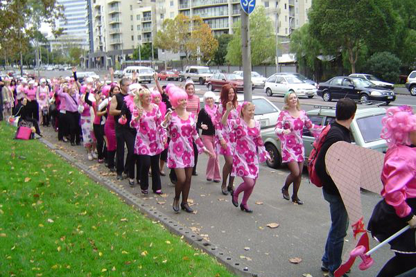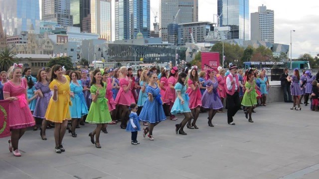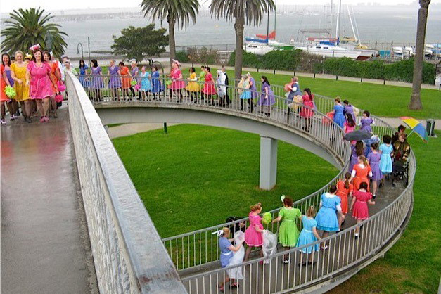 March O'Glamour from AAMI Park across Morell Bridge. Shim Sham Shimmy on Morell Bridge. On to a Free Tap Performance in The Royal Botanical Gardens.